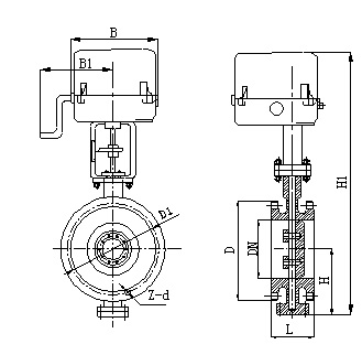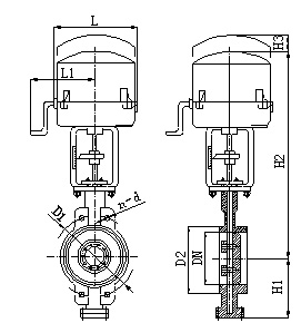 2、电动金属硬密封法兰式蝶阀外形及连接尺寸