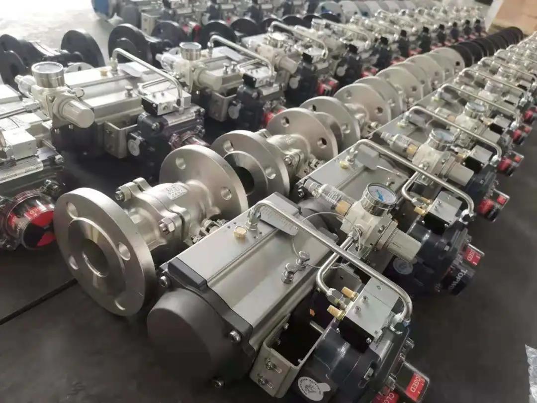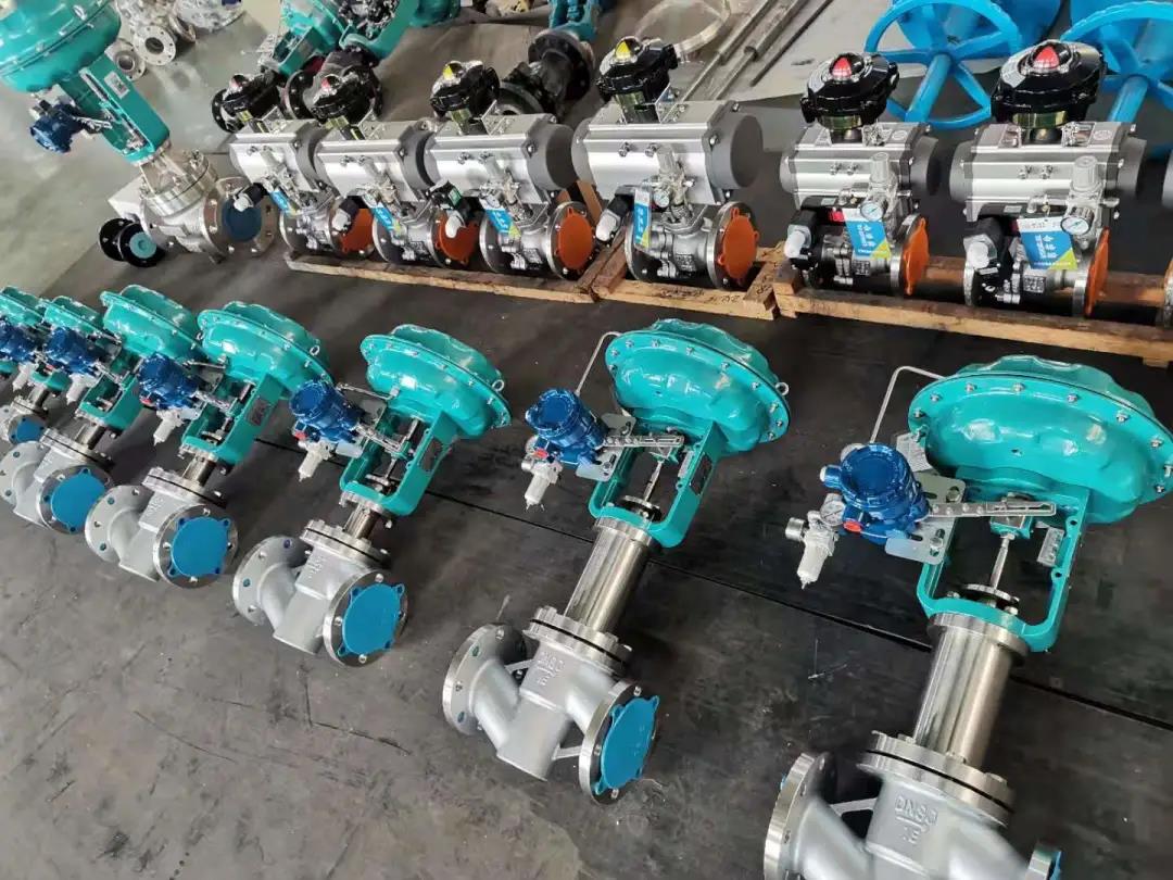 气动调节阀是以压缩气体为动力源,以气缸为执行器,并借助于阀门定位器、转换器、电磁阀、保位阀、储气罐、气体过滤器等附件去驱动阀门,实现开关量或比例式调节,接收工业自动化控制系统的控制信号来完成调节管道介质的:流量、压力、温度、液位等各种工艺过程参数。气动调节阀的特点就是控制简单,反应快速,且本质安全,不需另外再采取防爆措施。  气动调节阀的安装说明书(1)调节阀安装位置,距地面要求有一定的高度,阀的上下要留有一定空间,以便进行阀的拆装和修理。对于装有气动阀门定位器和手轮的调节阀,必须保证操作、观察和调整方便。 (2)调节阀应安装在水平管道上,并上下与管道垂直, 一般要在阀下加以支撑,保证稳固可靠。对于特殊场合下,需要调节阀水平安装在竖直的管道上时,也应将调节阀进行支撑(小口径调节阀除外)。安装时,要避免给调节阀带来附加应力)。  (3)调节阀的工作环境温度要在(-30~+ 60),相对湿度不大于95%。 (4)调节阀前后位置应有直管段,长度不小于10倍的管道直径(10D),以避免阀的直管段太短而影响流量特性。 (5)调节阀的口径与工艺管道不相同时,应采用异径管连接。在小口径调节阀安装时,可用螺纹连接。 阀体上流体方向箭头应与流体方向一致。 (6)要设置旁通管道。目的是便于切换或手动操作, 可在不停车情况下对调节阀进行检修。 (7)调节阀在安装前要彻底清除管道内的异物,如污垢、焊渣等。 气动调节阀的使用注意事项1、 本阀应存放在干燥的室内,通路两端必须堵塞。不准堆置存放2、 长期存放的调节阀应定期检查,清除污垢,在各运动部分及加工面上应涂以防锈油,防止生锈。 3、 本阀应安装在水平管道上,必修垂直安装。阀杆向上。 4、 必修按图示箭头所指示介质流动方向进行安装。 |