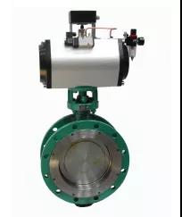 压力:PN10~PN40 材质:铸铁、铸钢、不锈钢 连接:法兰、对夹 以压缩空气为动力,阀杆带动阀芯在阀体内转动90°,可以实现全开——全闭的动作。该产品按其密封性能分为金属密封与软密封。具有结构紧凑,体积精小,运行可靠,密封性好,维修容易,安装方便,适应性强等优点