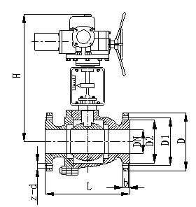 ZAJQ941F/H型电动O球阀外形及连接尺寸