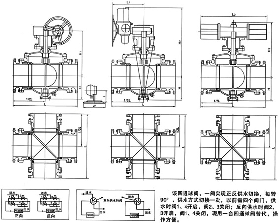 Q946电动四通球阀的填料选用编结、柔性石墨密封圈或四氟烯密封圈,使得阀杆在一定的润滑情况下实现可靠的密封。根据需要,球阀可设计成防静电结构,在球体与阀杆、阀杆与阀体之间设置导电弹簧,避免静电打火点燃易燃物质,确保系统安全。密封副形式多样。根据不同工况可选用软密封、硬密封、防火阀座等结构;DN150以下为浮球形式,DN200以下为固定球形式。球阀阀座处可设置辅助密封结构,在阀座和阀杆部位加装注脂阀,紧急情况下可暂时密封,并可根据需要加长阀杆以适宜埋地铺设得场所。
